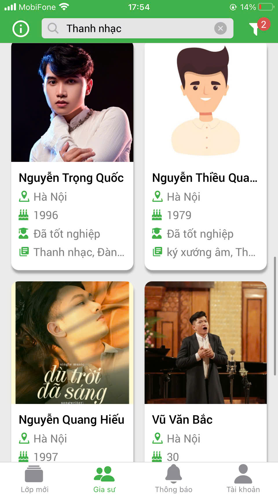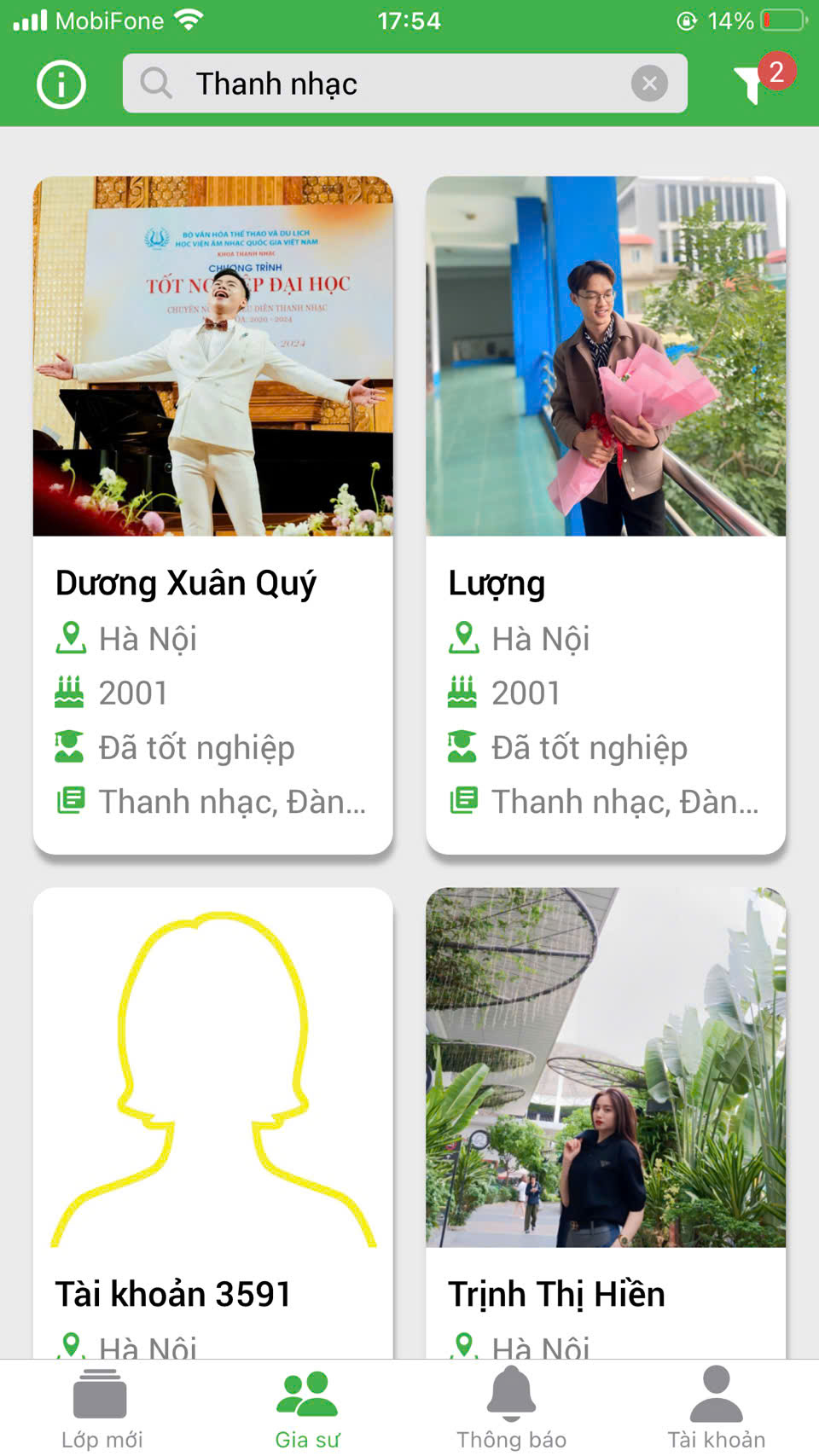 Hãy đến với Trung tâm gia sư Tài Năng Trẻ! Chúng tôi chuyên cung cấp đội ngũ gia sư có chuyên môn cao và được đào tạo từ các trường đại học, trung tâm thanh nhạc...sẽ giúp các bạn nâng cao trình độ thanh nhạc của mình nhằm phục vụ cho những cuộc thi hay nguyện vọng học tập tại các nhạc viện.