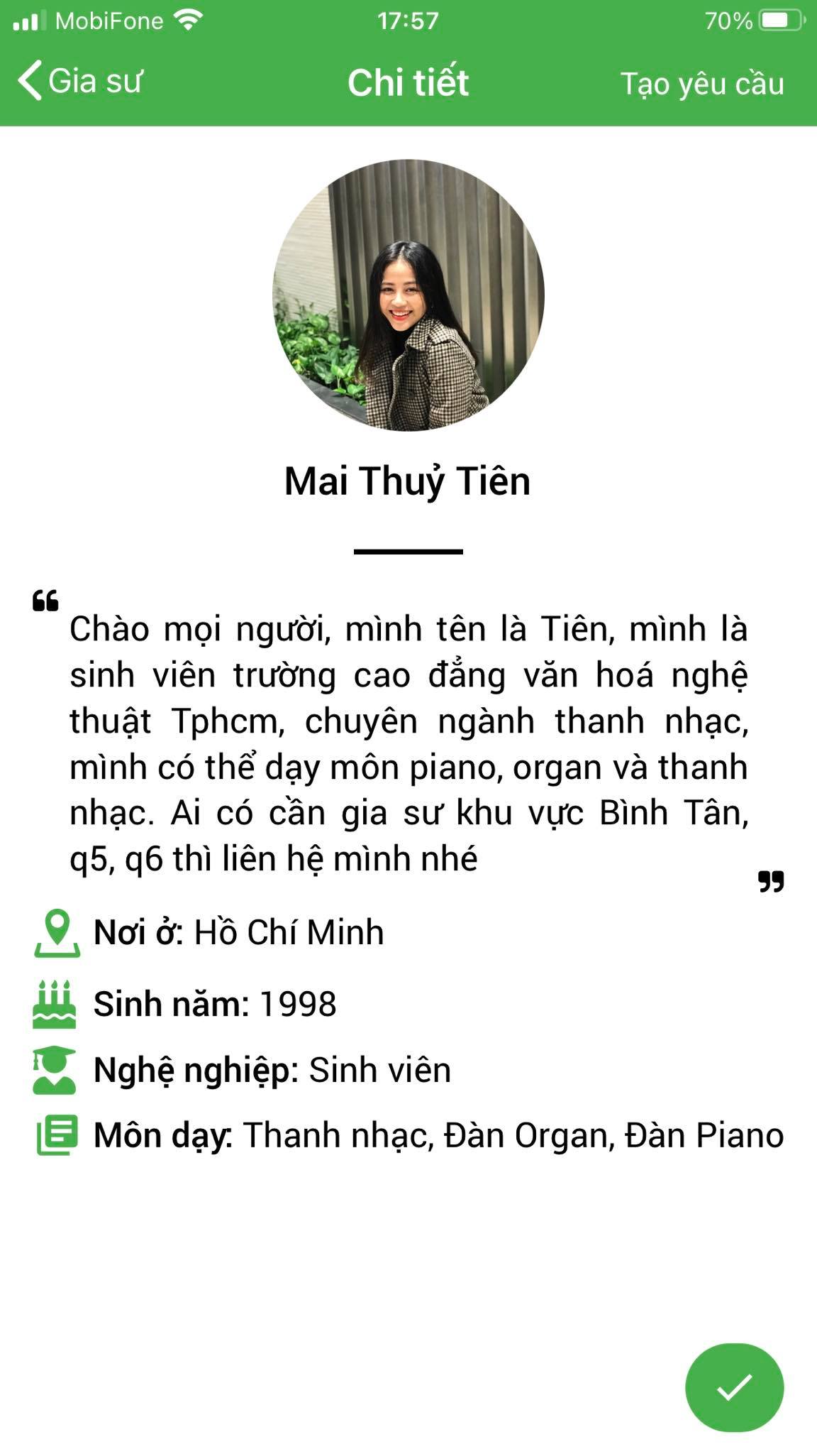 XEM THÊM NHIỀU PROFILE GIA SƯ DẠY THANH NHẠC TẠI HỆ THỐNG DAYKEMTAINHA.VN >>